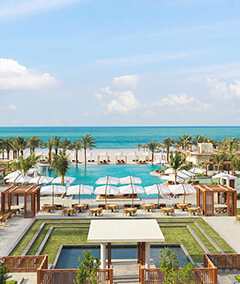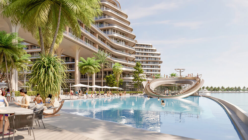 The development features four interconnected towers, each boasting a unique façade that mirrors the sparkling waters of the Arabian Gulf. From the chic one-bedroom apartments to the opulent three bedroom duplexs, each residence embodies a symphony of sophistication and modern living.